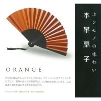 本革扇子 オレンジ(レザーファン 牛本革使用)